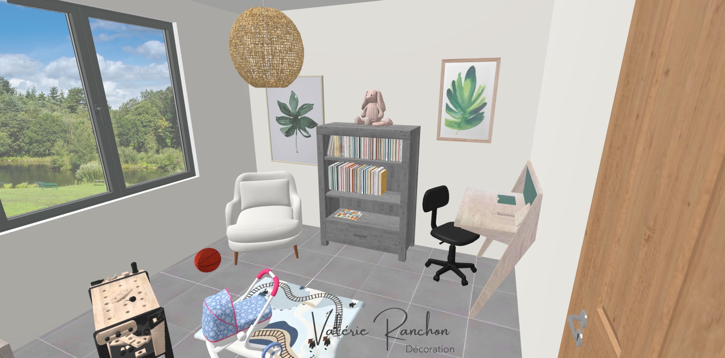 A l’étage, les pièces d’origine ont été redistribuées en deux chambres enfants avec une salle de bains privative.