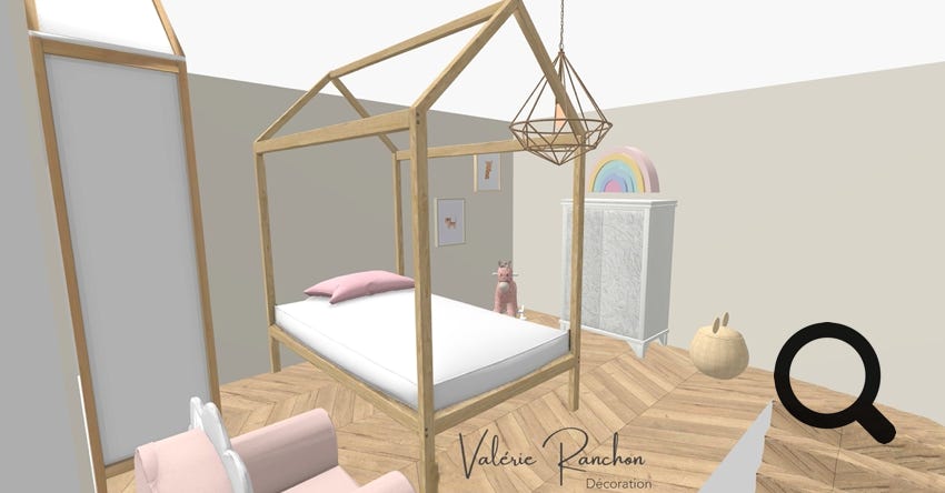 La chambre des parents a été surélevée de façon a former une estrade suffisamment haute, accessible avec un petit escalier attenant. Celle-ci accueillera désormais la fille ainée, qui conservera une pièce pour elle.