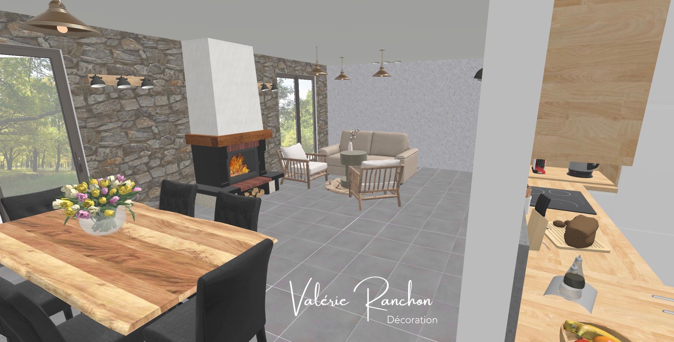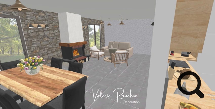 Pour les pièces de vie, les murs séparant les pièces d’autrefois, ont été démolis pour laisser place à un grand séjour / salle a manger avec une cuisine à proximité.